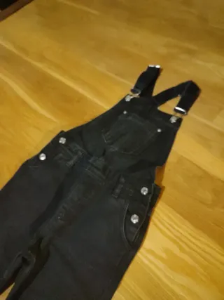Peto vaquero de niña de la marca Mango. - Color negro. - Diseño de peto. - Tejido vaquero.