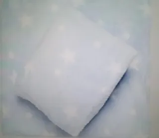 Juego de sábanas para cuna de 60 cm, confeccionadas en coralina suave y cálida. El diseño presenta un encantador estampado de estrellas en tono azul. - Material: Coralina. - Color: Azul con estrellas blancas. - Medida: Cuna 60 cm.
