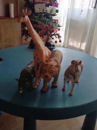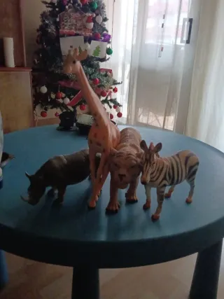 Juguetes animales: jirafa, tigre, rinoceronte