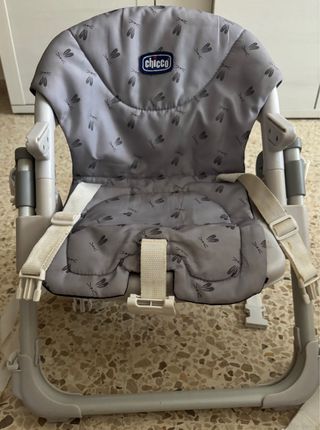 Trona Chicco en buen estado. Ha tenido un uso normal, con desgastes visibles en las fotos (debido ha que ha pasado por el uso de tres niños. El acolchado tiene un roto, pero que con una funda se soluciona. - Asiento acolchado. - Arnés de seguridad. - Estructura resistente.