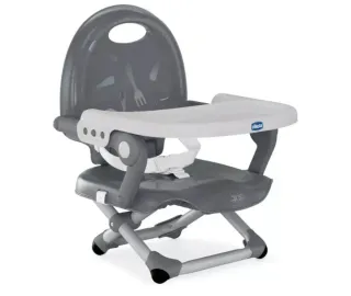 Asiento elevador Chicco Pocket Snack, ideal para que los más pequeños coman en la mesa. - Apto para niños de 6 meses en adelante. - Soporta hasta 15 kg. - Incluye bandeja. - Plegable para fácil transporte.