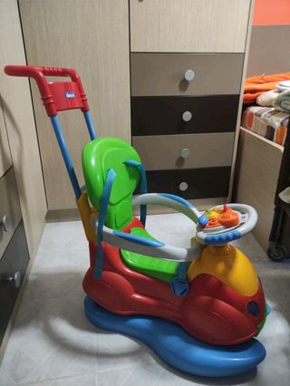 Coche de juguete de la marca Chicco, ideal para todos los niños hasta los más pequeños, funciona también como andador. - Marca: Chicco - Colores: Rojo, amarillo y verde - Material: Plástico resistente