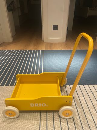 Andador infantil de madera en perfecto estado. Ideal para que los más pequeños de la casa den sus primeros pasos. - Estructura de madera resistente y ligera. - Ruedas de goma para un desplazamiento suave. - Diseño colorido y atractivo para niños y niñas. - Mango ergonómico para un agarre cómodo.