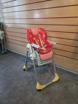 Con bandeja extraíble y de dos posiciones (más cerca o más alejada del cuerpo del niño) la bandeja no se usado nunca. Además incluye sobrebandeja para facilitar la limpieza (nunca usada).Regulable en altura hasta en 7 posiciones. Respaldo hasta 6 posiciones y reposapiés multiposición.Se puede plegar para que quede recogida.Desenfundable y lavable. Está en perfecto estado. El reductor es acolchado y reversible Las cuerdas de los arnés están lavados a mano,no se pueden quitar