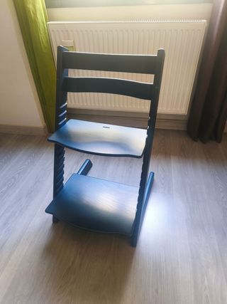 Preciosa silla Tripp Trapp de Stokke, en color azul. Está en muy buen estado y lista para usar. - Perfecta para niños y niñas. - Diseño icónico y funcional. - Color azul oscuro.