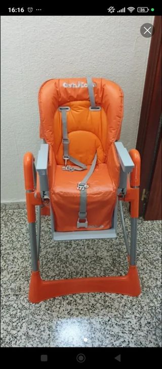 Elevador para silla de comer marca Olmitos. Buen estado, con alguna mancha de uso pero muy bien conservado, se ha usado muy poco. - Color gris y naranja. - Incluye cinturones de seguridad. - Marca OLMITOS.