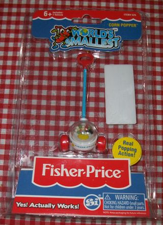 Palolitero de maiz mas pequeño del mundo. Miniatura de juguete de la marca fisher price . En su caja original sin abrir . Edición limitada, andador niño pequeño