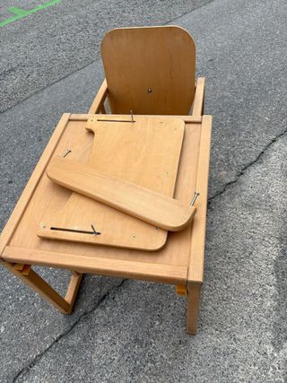 Trona de madera para bebés y niños pequeños. Su diseño clásico la hace un mueble funcional y estético para el hogar. - Fabricada en madera. - Bandeja de seguridad. - Arnés de sujeción. Usado pero bien conservado. Algún signo de desgaste. Bandeja de seguridad extrañare. Precio ajustado. Solo en persona, metro hostafrancs