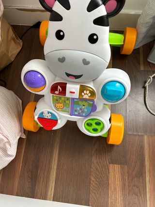 CORREPASILLOS EVOLUTIVO 2 EN 1: La base basculante ofrece a los más pequeños la posibilidad de balancearse de adelante a atrás hasta que cojan la destreza suficiente para utilizarlo como correpasillos de forma libre gracias a sus prácticas ruedas. CENTRO ELECTRÓNICO: Al presionar los botones del sombrero se podrán escuchar sonidos, música, luces.. DESARROLLA LAS HABILIDADES MOTORAS: Con este juguete los niños podrán desarrollar sus capacidades motoras y la destreza a la hora de caminar y correr sobre 4 ruedas. Practicamente como nuevo, muy poco uso, funciona correctamente.