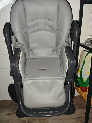 Trona de la marca Kinderkraft en color gris. Perfecta para las comidas de los más pequeños. - Asiento acolchado. - Bandeja extraíble. - Arnés de seguridad. Está muy cuidada tiene dos bandejas la primera algo rallado algo lógico en niños pero la segunda nunca la usa lo cual está perfecta nueva sin un rallón. El resto está perfecto