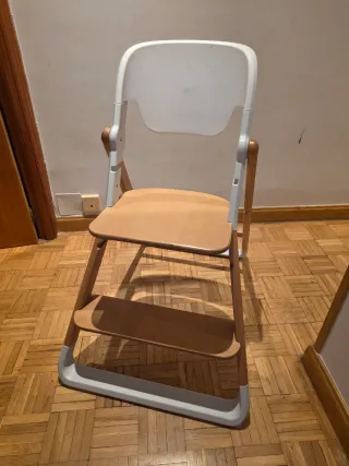 Silla de madera de la marca Stokke, modelo Trona. Perfecta para que los más pequeños coman y jueguen. - Fabricada en madera. - Diseño ergonómico y seguro. Presenta signos de uso normales (pequeños roces/marcas estéticas), y falta un tornillo pero es totalmente funcional, estable y cómoda. Ideal para acompañar el crecimiento del niño/a. Se puede ver sin compromiso.