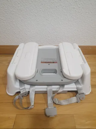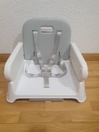 Elevador de silla portátil para niños de la marca Chicco. Ideal para llevarlo a cualquier lugar. - Diseño compacto y ligero. - Arnés de seguridad. - Estructura resistente.