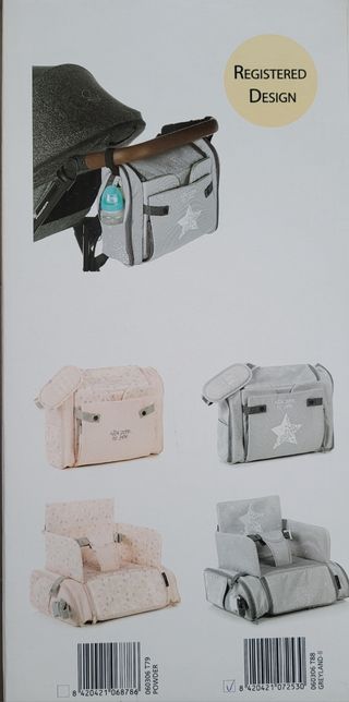 Práctico bolso-elevador con estructura interior rígida y diferentes compartimentos. Con amplio espacio para llevar los utensilios del bebé en sus salidas o viajes y proteger Su contenido. Se acopla a la silla del adulto por el asiento y el respaldo de forma rápida y segura.Dispone de velcros laterales para poder colgar el bolso del manillar de las sillas de paseo.para niños que pueden sentarse sin ayuda (mínimo 6 meses) y hasta 36 meses o un peso máximo de 15 Kg.