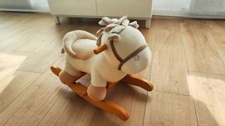 Balancín con forma de caballo de madera y tela. Para decoración y juego