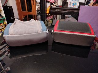 Alzadores de silla para niñ@s. Uno en color negro y rojo y el otro en gris y azul. Los dos alzadores tienen las mismas medidas y están en perfecto estado. Unidad 14'91€ Los dos juntos 25€