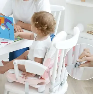 Trona portátil para bebes y niños. Yo la uso con una niña de 4 años y medio grande, de 23 kg. En perfecto estado.