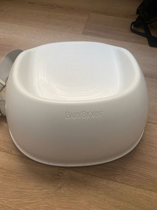 asiento elevador de color blanco facil de transportar y para la mayoria de las sillas. sin BPA ni PVC para niños a partir de 3 años
