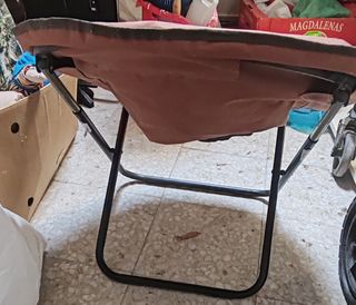 Sillita infantil plegable, ideal para niños pequeños. Es ligera y fácil de transportar. - Diseño plegable para facilitar su almacenamiento. - Tapicería de tela resistente en color marrón. - Decorada con simpáticos dibujos de osos. - Estructura de metal resistente.