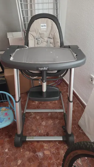 Trona de la marca Inglesina, ideal para bebés y niños pequeños. - Asiento acolchado. - Arnés de seguridad. - Bandeja extraíble. - Ruedas para movilizarlo sin esfuerzo