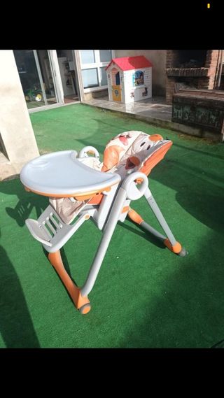 Trona evolutiva peg perego prima papa 03 Utilizada (por un niño) pero en perfecto estado de funcionamiento y con minimos desperfectos del uso. Ligera, con ruedas, se regula en altura y varias posiciones del asiento y reposapies, llegando a tumbarse por completo. Bandeja extraíble con dos posiciones (tiene cubre bandeja para el vaso y facilitar limpieza) Se entrega con dos fundas para el asiento.