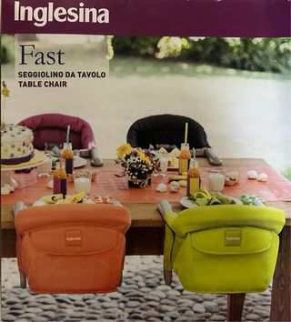 silla de mesa ligera y plegable y facil de transportar para niños de hasta 15kg. Permite al niño sentarse en la mesa como un adulto en cualquier situacion