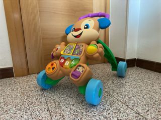 Andador regalado por reyes sin ticket. Nuevo con su caja original. Precio original 49,99 en amazon. Andador y juguete electrónico de aprendizaje para bebés con 2 maneras de jugar a medida que crece el bebé: ¡Juega sentado o Primeros pasos! 3 niveles de Smart Stages con más de 75 canciones, sonidos y frases enseñan el abecedario, formas, colores, números y palabras en inglés (el modo inglés enseña palabras en francés) Asa de fácil agarre, base resistente de 4 ruedas y 7 actividades manuales entre las que se incluyen teclas de piano y nariz con luz, piezas que giran, dan vueltas y se mueven, y mucho más Pulsa el botón del mundo para seleccionar un idioma: castellano, inglés, italiano o portugués Ayuda a fortalecer la motricidad fina y gruesa de bebés, niños y niñas de 6 meses a 3 años.