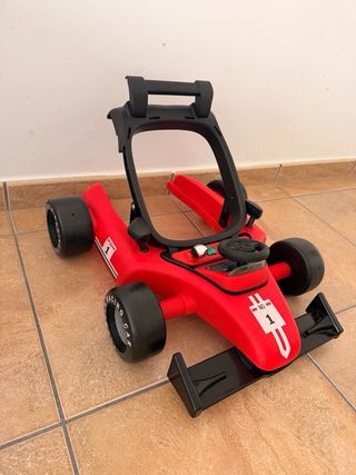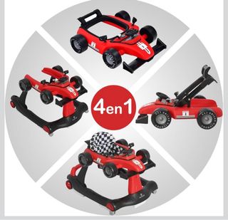 Tacatá con diseño de coche de carreras, ideal para los más pequeños. Se adapta a diferentes etapas de crecimiento. - Diseño de coche de carreras en color rojo. - Incluye asiento acolchado con estampado de cuadros. - Base estable con ruedas para facilitar el movimiento. Precio algo negociable.