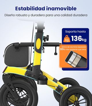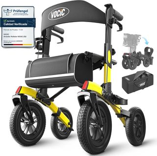 VOCIC Andador para ancianos,Andadores adultos con cesta y asiento y 4 ruedas,Andador plegable ligero, Aluminio ajustable en altura para exteriores y viajes, Negro (5 años de garantía) - Asiento acolchado. - Ruedas todoterreno. - Bolsa de transporte incluida. - Certificado de calidad. - Modelo Z52 color Amarillo. 📷 Se entrega con los accesorios que se aprecian en las fotos. 🛒Compra con envío o recoge en nuestra tienda de Fuenlabrada: 📍 Calle de Leganés 44 B. ♻️ Producto REACONDICIONADO con ligeros daños estéticos que no afectan su funcionamiento. 👌 1 año de garantía.