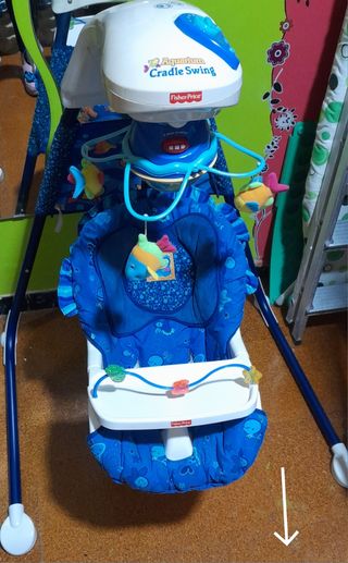 Columpio bebe Fisher price. columpio que se balancea,en dos posiciones.Asiento con cinturón de seguridad.Luz y música.Bandeja que se puede quitar y poner.