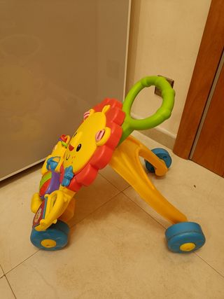 Andador para bebés con forma de león, de la marca Fisher-Price. Está en buen estado y listo para que tu pequeño disfrute. - Incluye sonidos y luces. - Contiene múltiples actividades. - Diseño colorido y atractivo.