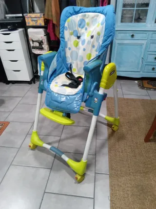 Solo se ha utilizado durante 1 mes porque nos regalaron dos. Preciosa trona de la marca Goldbaby, en perfecto estado. Es de color turquesa claro y tiene un diseño muy bonito y moderno. - Incluye arnés de seguridad. - Estructura de metal resistente. - Asiento acolchado y cómodo. - Bandeja extraíble para facilitar la limpieza.