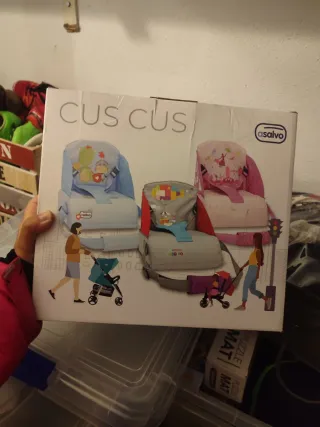 alzador tipo trona para poner sobre sillas, ideal para viajes y salidas. no ocupa espacio y pesa. apenas ha sido usado.