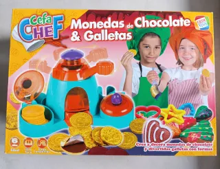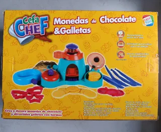 Juego Cefa Chef para crear y decorar monedas de chocolate y galletas con divertidas formas. Chocolate NO incluído. Está completo. Ideal para Navidad. Usado sólo una vez. - Incluye máquina para hacer monedas y galletas. - Diseños de galletas variados. - Para niños a partir de 6 años.