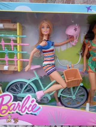 Incluye dos muñecas Barbie, Chelsea, una bicicleta, accesorios para el deporte y mascotas. Dos muñecas Barbie con atuendos veraniegos y Chelsea. Una bicicleta de color mint. Accesorios para jugar al fútbol. Cascos y protecciones. Dos perritos adorables. Skate y maleta rosa. Accesorios adicionales. Nuevo NO NEGOCIABLE