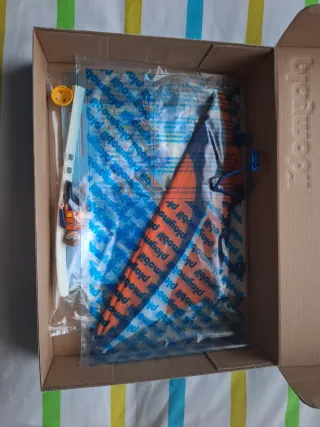 Set de Playmobil 9205, Ala Delta. - Incluye figura de piloto. - Diseño de ala delta en naranja y azul. - Accesorios de montaje. Aunque la caja está abierta el interior no se ha tocado y las bolsas están cerradas. La caja solo tiene un pequeño desperfecto (foto).