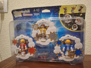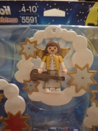 Set de Playmobil 5591, con ángeles para decorar el árbol de Navidad. Muy raro de encontrar. Se encuentra en su embalaje original, nunca ha sido abierto aunque tiene algún desperfecto y el plástico del blister está ligeramente despegado.