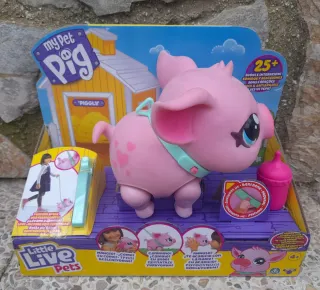 Este adorable cerdito interactivo My Pet Pig de Little Live Pets está listo para jugar y darte mucho cariño. ¡Es como tener una mascota de verdad! - Más de 25 sonidos e interacciones. - Mueve las orejas y la cola. - Saluda con su nariz. - Piel suave y agradable al tacto. - Camina con o sin correa. - Baila y canta.