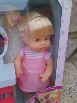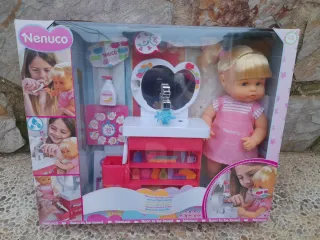 Juego de Nenuco para aprender a lavarse las manos. Incluye accesorios para jugar. - Muñeca Nenuco. - Lavabo con espejo. - Accesorios de baño.