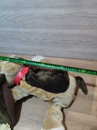 Peluche de perro con un diseño tierno y suave. - Color principal marrón y beige. - Orejas largas y caídas. - Nariz negra y brillante.