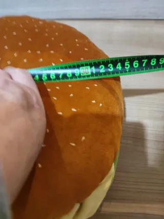 Peluche con forma de hamburguesa, ideal para decorar o para jugar. Su diseño alegre y colorido lo hace muy llamativo. - Material suave y agradable al tacto. - Relleno mullido. - Detalles bordados en la cara.