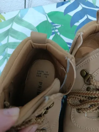 Botas de niño color camel con cordones y cremallera lateral. - Diseño tipo montañero. - Suela de goma. - Detalle de pespuntes.