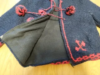 Chaqueta tejida casera azul y roja