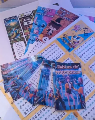 Conjunto de tarjetas didácticas para aprender las tablas de multiplicar. - Diseño con figuras animadas. - Incluye multiplicaciones del 2 al 10. Cualquier diseño y personalizado