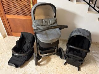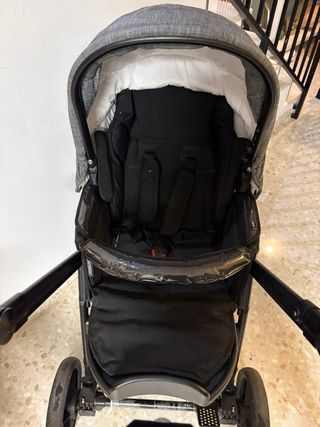 Marca bebecar modelo i pop incluye cuco + isofix, capazo y silla , combinado de color gris y negro. Chasis de color negro. Muy buen estado, no tiene manchas , todo funciona correctamente.