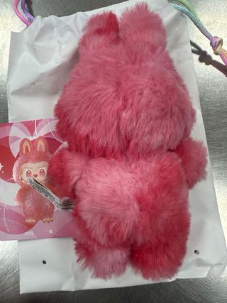 Figura original de Labubu de la colección Love de Popmart. - Diseño de peluche rosa con detalles de conejo. - Incluye bolsa de tela. - Etiqueta de The Monsters.