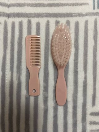 Set de cepillo y peine para bebé en color rosa. Ideal para el cuidado del cabello del más pequeño. - Cepillo con cerdas suaves. - Peine con dientes finos.