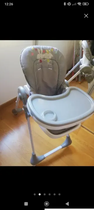 Trona de bebé en buen estado, lista para su próximo uso. Es cómoda y práctica para las comidas. - Color gris y blanco. - Bandeja extraíble. - Reposapiés. PARA RECOJER EN ANTEQUERA⚠️