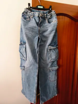 Pantalón vaquero tipo cargo para niña, talla 158. Un básico cómodo y a la moda. - Diseño de cinco bolsillos. - Cintura con trabillas para cinturón. - Cierre de cremallera y botón.