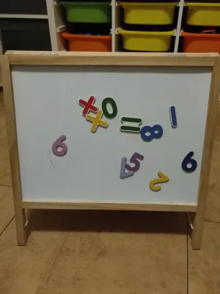 Pizarra doble de madera para mesa, ideal para que los más pequeños aprendan y se diviertan. Incluye un reloj didáctico. - Pizarra de doble cara. - Marco de madera. - Reloj didáctico con manecillas móviles.