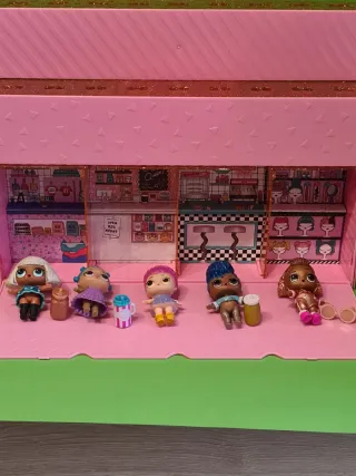Expositor de la tienda Pop-Up de L.O.L. Surprise!. Incluye 5 muñecas, lo que se ve en las fotos. Le falta el mango del expositor. Y la caja está muy dañada. - Diseño de tienda con múltiples estancias. - Incluye varias muñecas L.O.L. Surprise!. - Accesorios variados para la tienda. Ver fotografías.